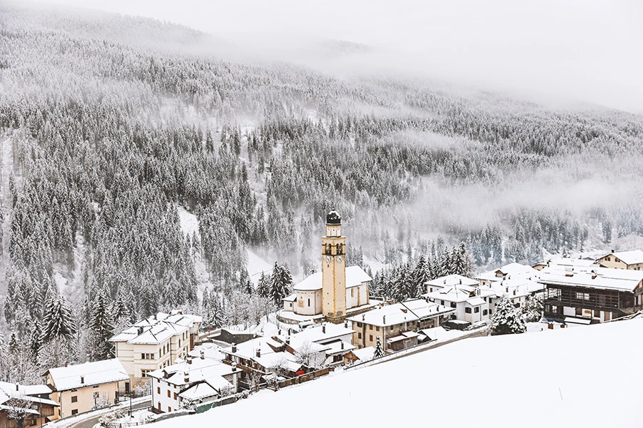 Strolling is almost as popular as skiing. From around 3 pm, everyone wanders Corso Italia in their finest attire, passing historic houses with painted façades and elegant shops. Boutique stores and art galleries are a feast for the eyes. The medieval church of Santi Filippo e Paolo towers above the shops and houses. Nearby are the town hall and the folklore museum, Ciasa de ra Regoles, named after the local Ladin language.