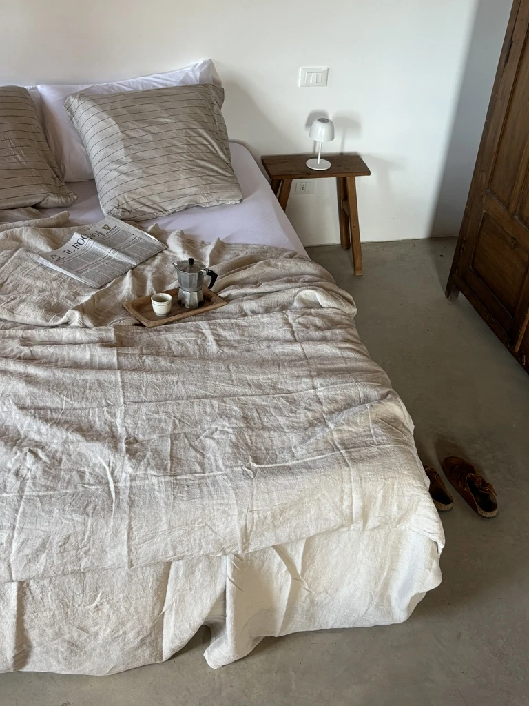 At Plinius, we love how Mikmax captures this feeling. Their bedding and table linen reflect the same simplicity we find in our favorite Italian homes: sun-washed rooms, soft morning light, and long breakfasts that stretch into the afternoon.