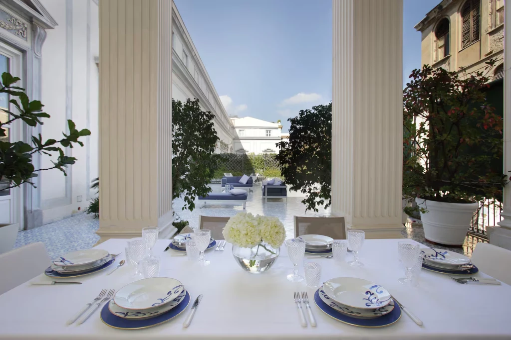 The terrace is one of the home’s defining features. Spanning 150 m² and partially shaded for alfresco dining, it is framed by greenery that softens the cityscape. It is a space for conversation, sun-soaked mornings, or quiet evenings with candlelight — a rare outdoor sanctuary in the heart of Palermo.