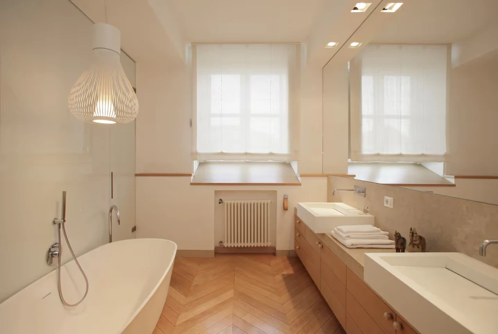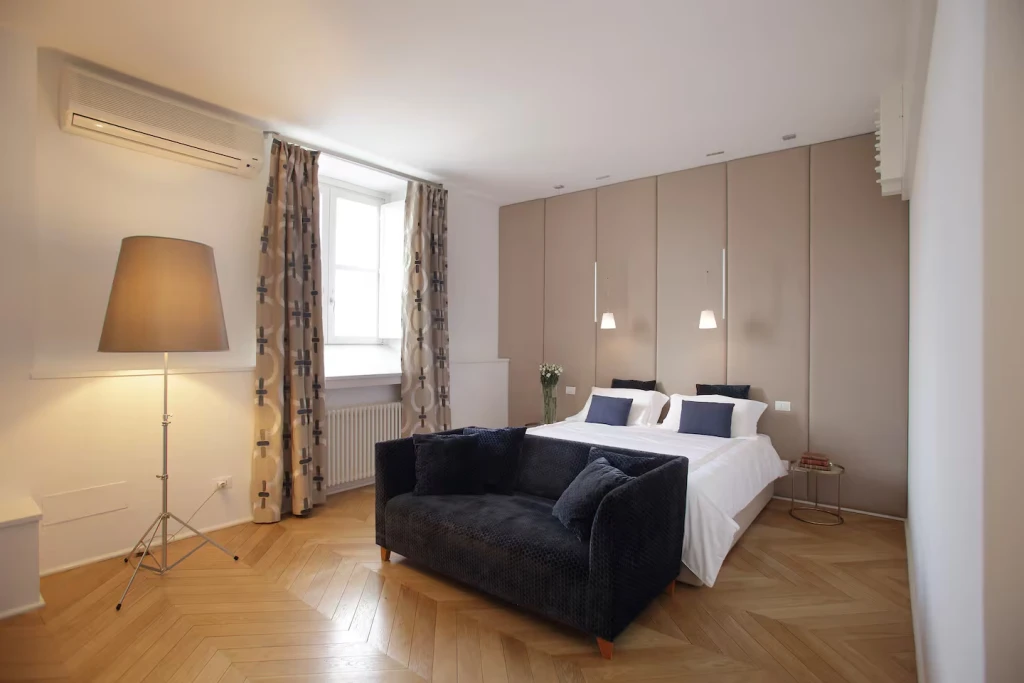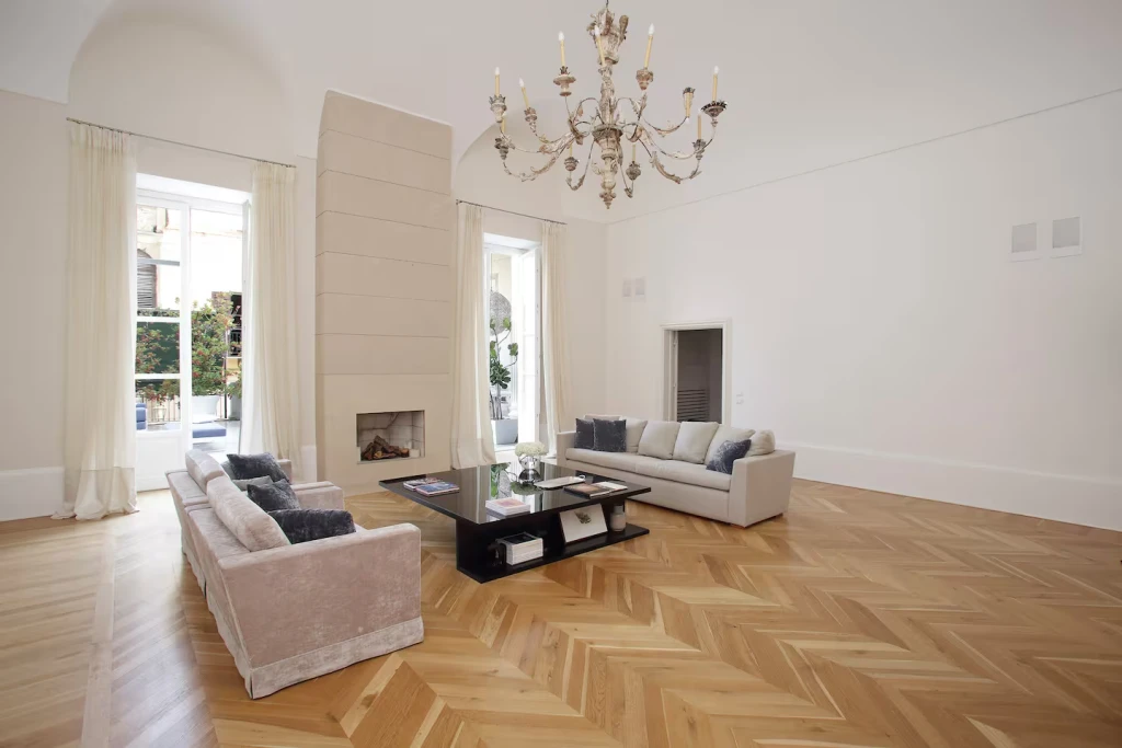 Each room combines historic charm with contemporary comfort. High ceilings, classic proportions, and careful finishes respect the building’s heritage, while modern amenities make it feel luxurious. The furnishings are understated yet elegant, creating a warm, inviting atmosphere throughout the residence.