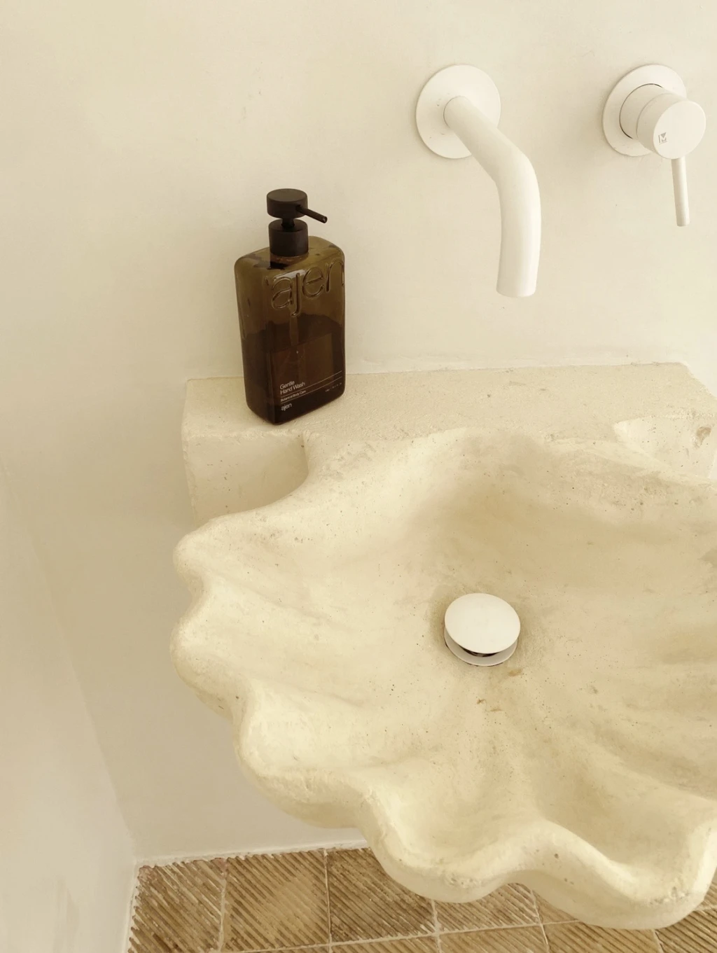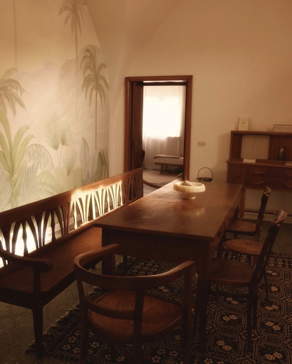 The home is lovingly curated with vintage finds, local ceramics, tropical murals, and carefully chosen textiles. There's a sense of soul and softness in every room.
