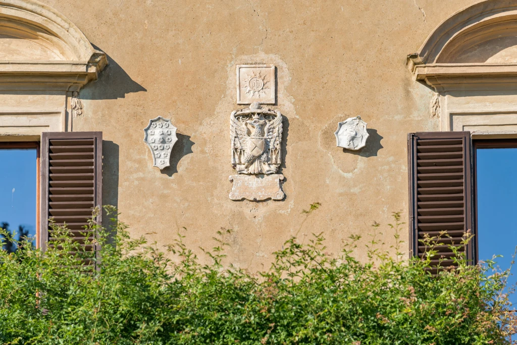 Outside, the estate opens toward the rolling countryside—waves of green, vineyards, olive groves, and the silence that makes Tuscany unforgettable. Manicured lawns surround the property, providing privacy without shutting out the views.