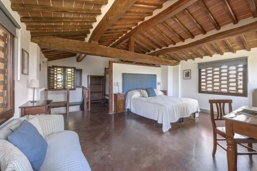 Structured around a central courtyard, the property is ideal for large groups or family reunions. Multiple wings and living areas allow for both shared moments and private retreats. From spacious lounges to sun-drenched patios, each corner invites relaxation and connection, whether lounging with a book, enjoying a cocktail, or taking in the panoramic views of the surrounding hills.