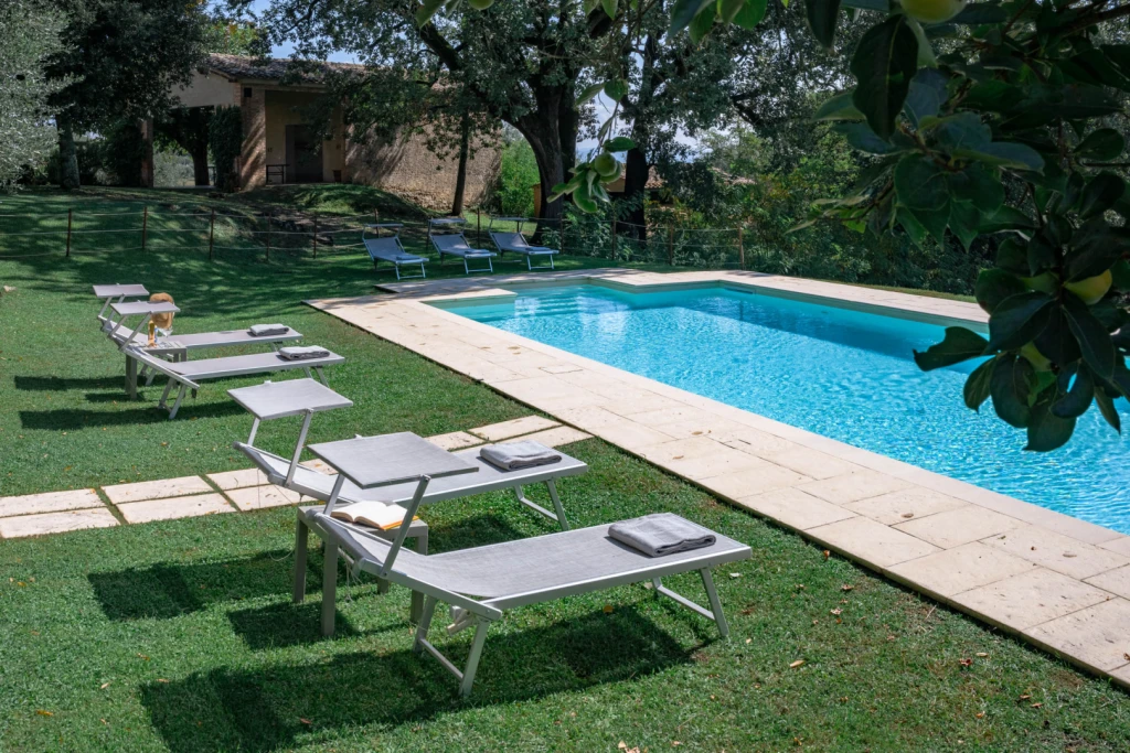 Guests can enjoy private wine tastings within the estate’s cantina, take part in yoga sessions in a dedicated shala, or arrange tailored in-villa dining experiences. The estate itself produces organic wines, cereals, and D.O.P. extra virgin olive oil, offering a true taste of Tuscany.