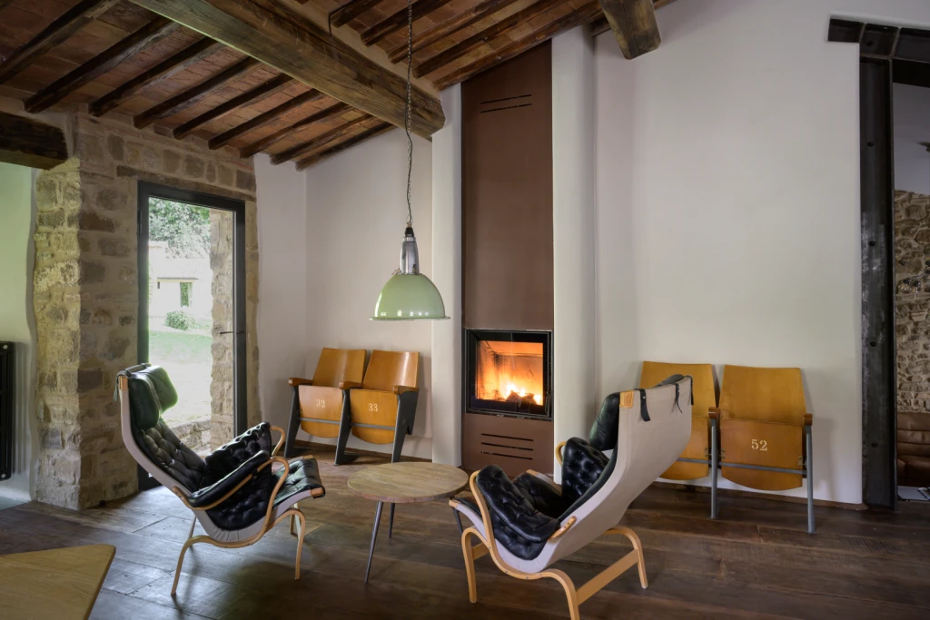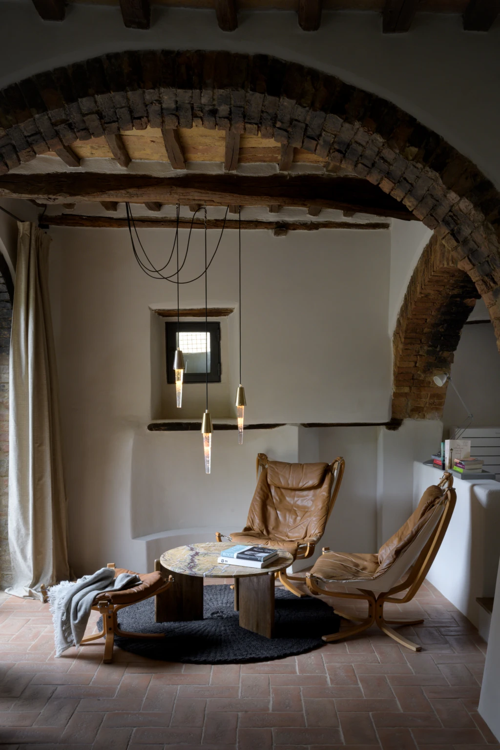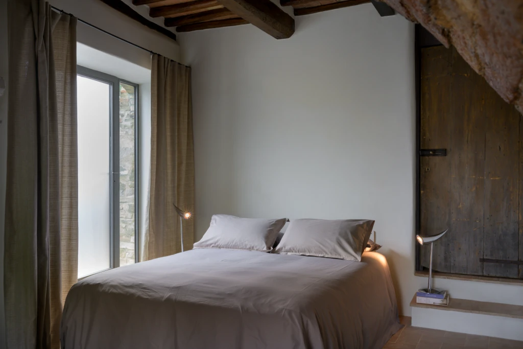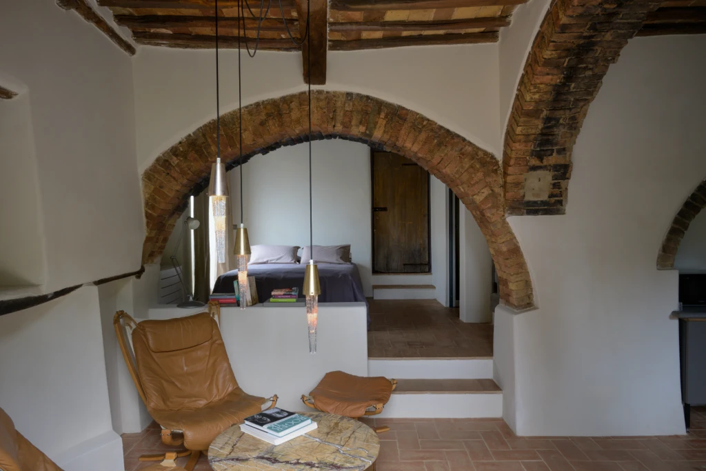 Inside, 200m2 of shared living space includes an open, airy lounge and dining areas designed for relaxation and conviviality. The interiors balance Tuscan authenticity with contemporary comfort, creating a welcoming space to unwind after a day exploring the hills, villages, and vineyards around.