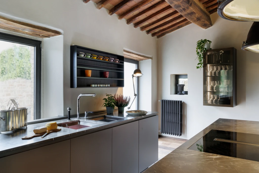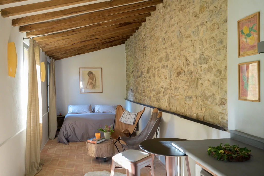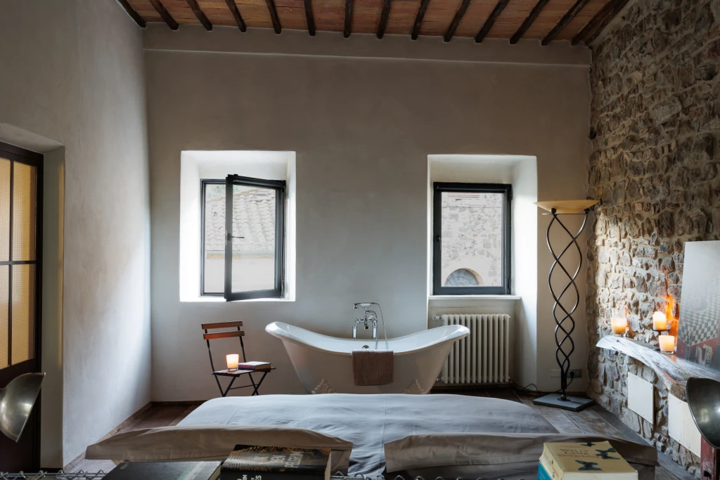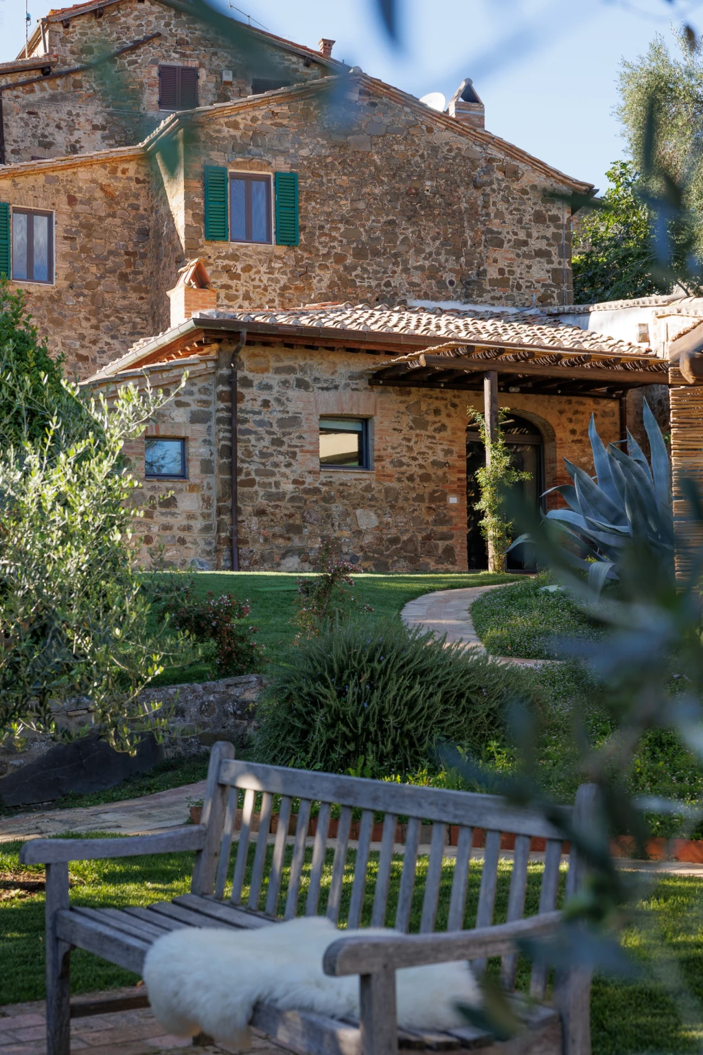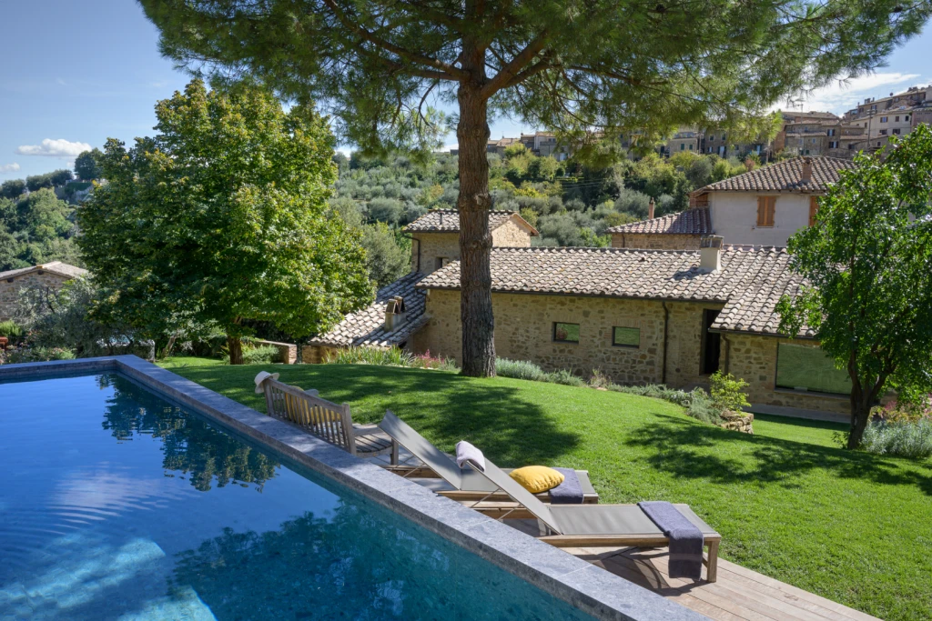 Inside, 200m2 of shared living space includes an open, airy lounge and dining areas designed for relaxation and conviviality. The interiors balance Tuscan authenticity with contemporary comfort, creating a welcoming space to unwind after a day exploring the hills, villages, and vineyards around.