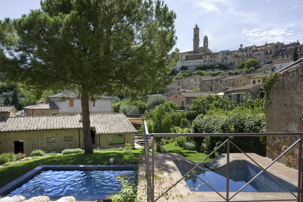 The Villa sits in a quiet residential area at the foot of Montalcino’s historic centre. From here, the town’s cafes, artisan shops, and the lively piazza are only a few minutes’ walk, while the world-famous vineyards of Brunello di Montalcino are just ten minutes away. This makes it a perfect base for exploring both the historic centre and the surrounding countryside.