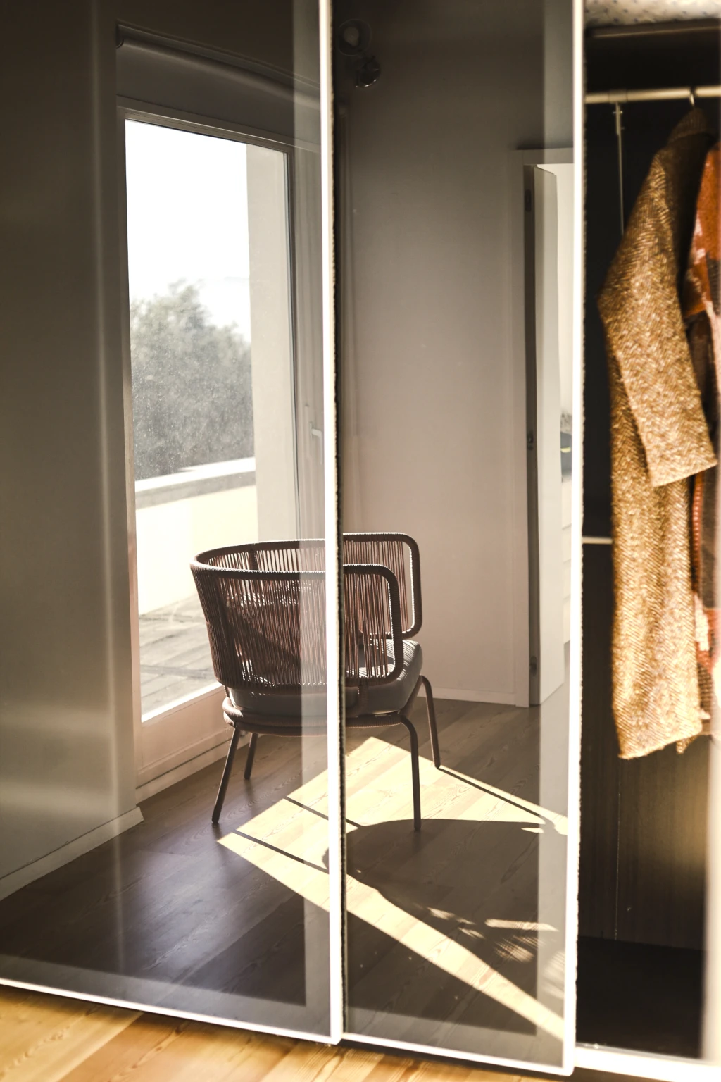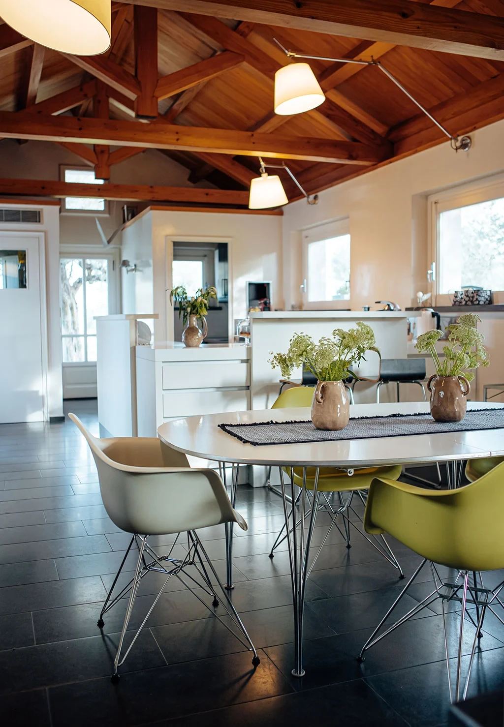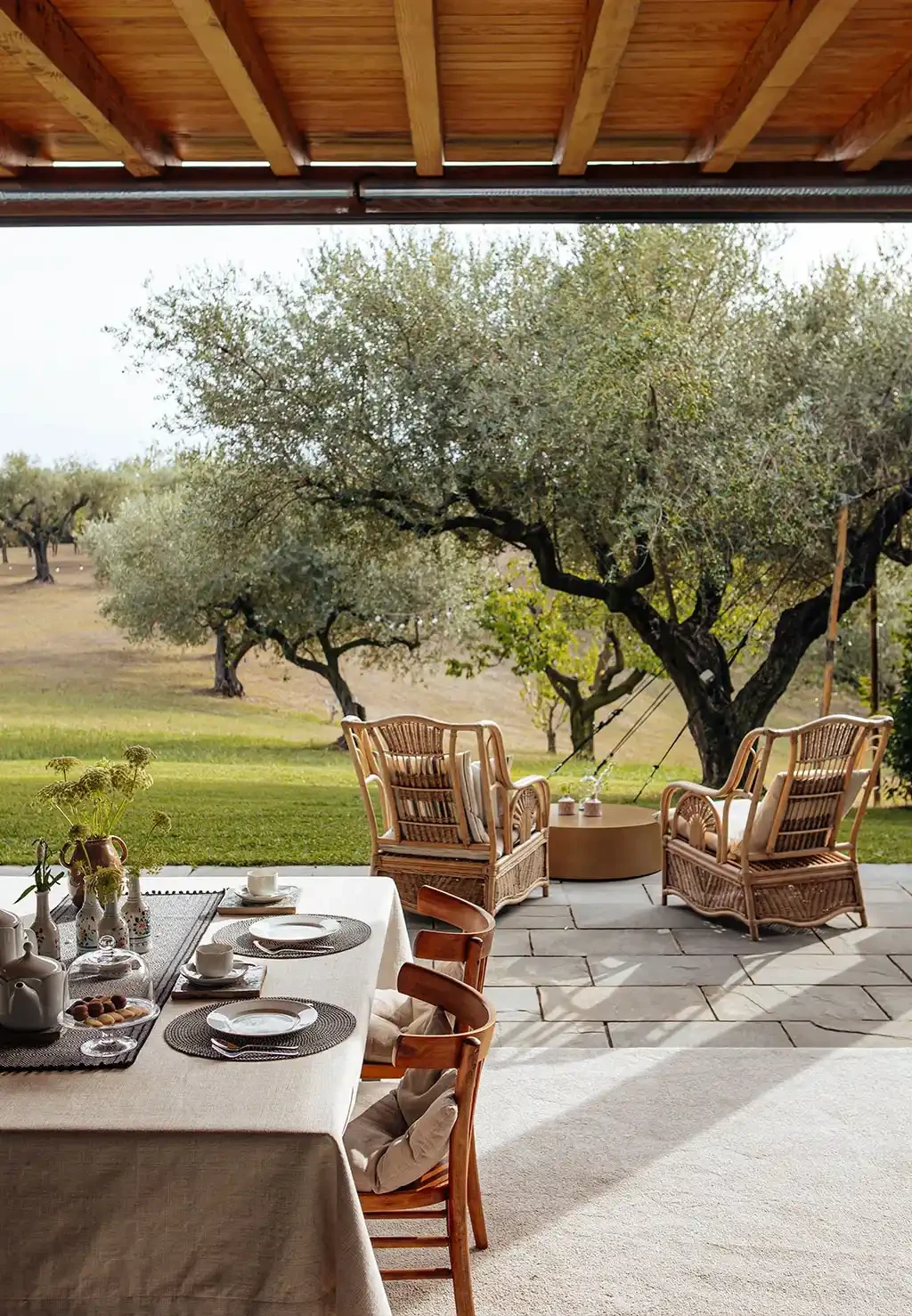 Set among gentle hills and surrounded by olive trees and fruit orchards, this house is a haven of calm in the heart of Abruzzo. Built in 2008 by Rosa, an architect who carefully shaped the home with respect for the land and its rhythms, it has the warmth and soul of a lived-in place. Together with her daughter, she welcomes guests into a home where design, nature, and hospitality come together in perfect balance — a space created for rest, shared meals, and a slower way of living.