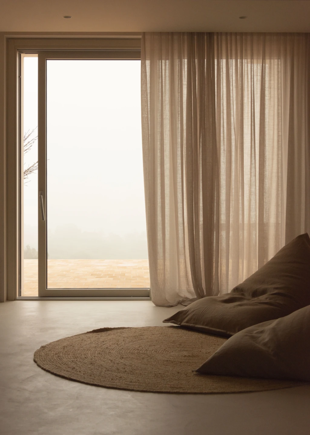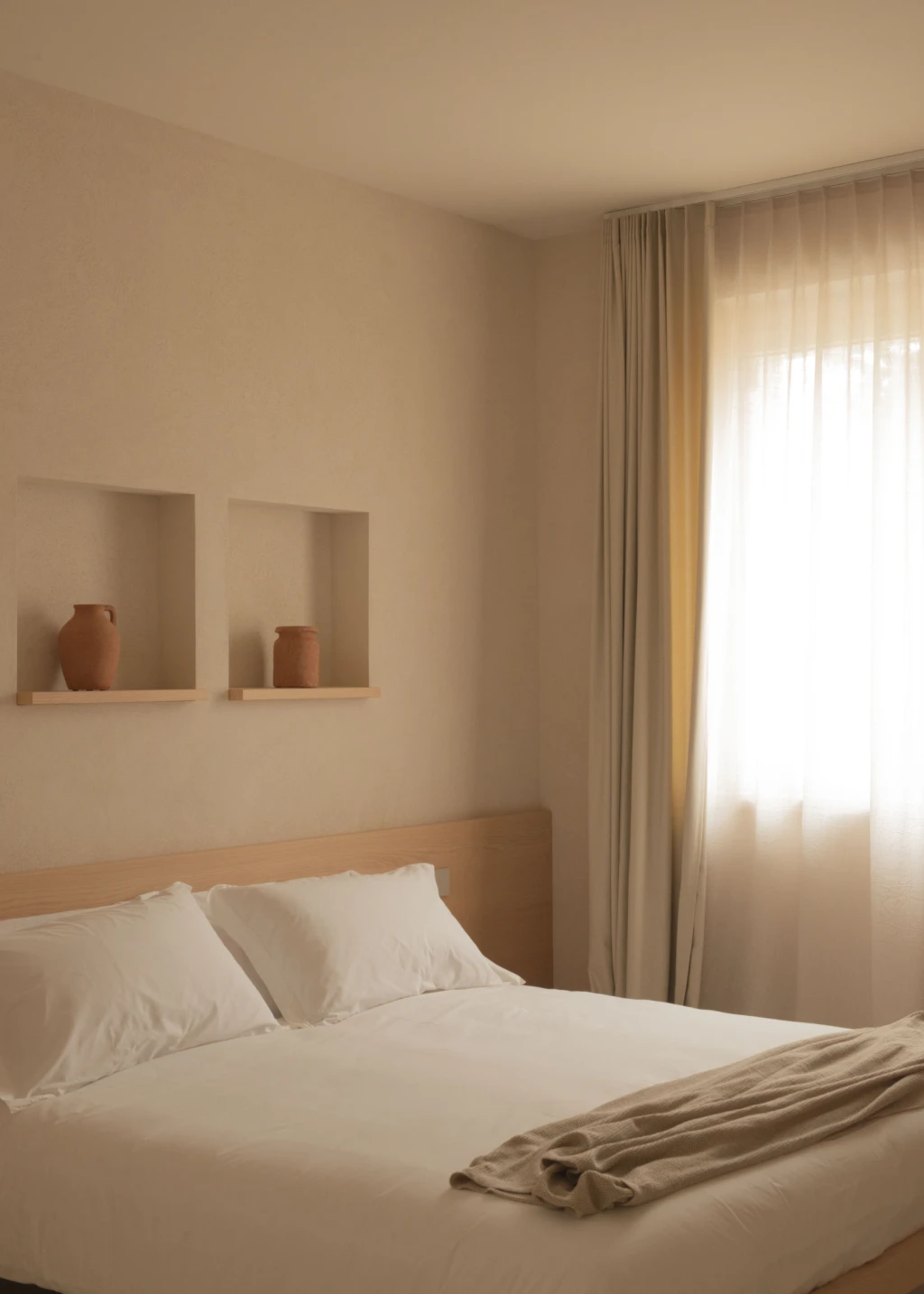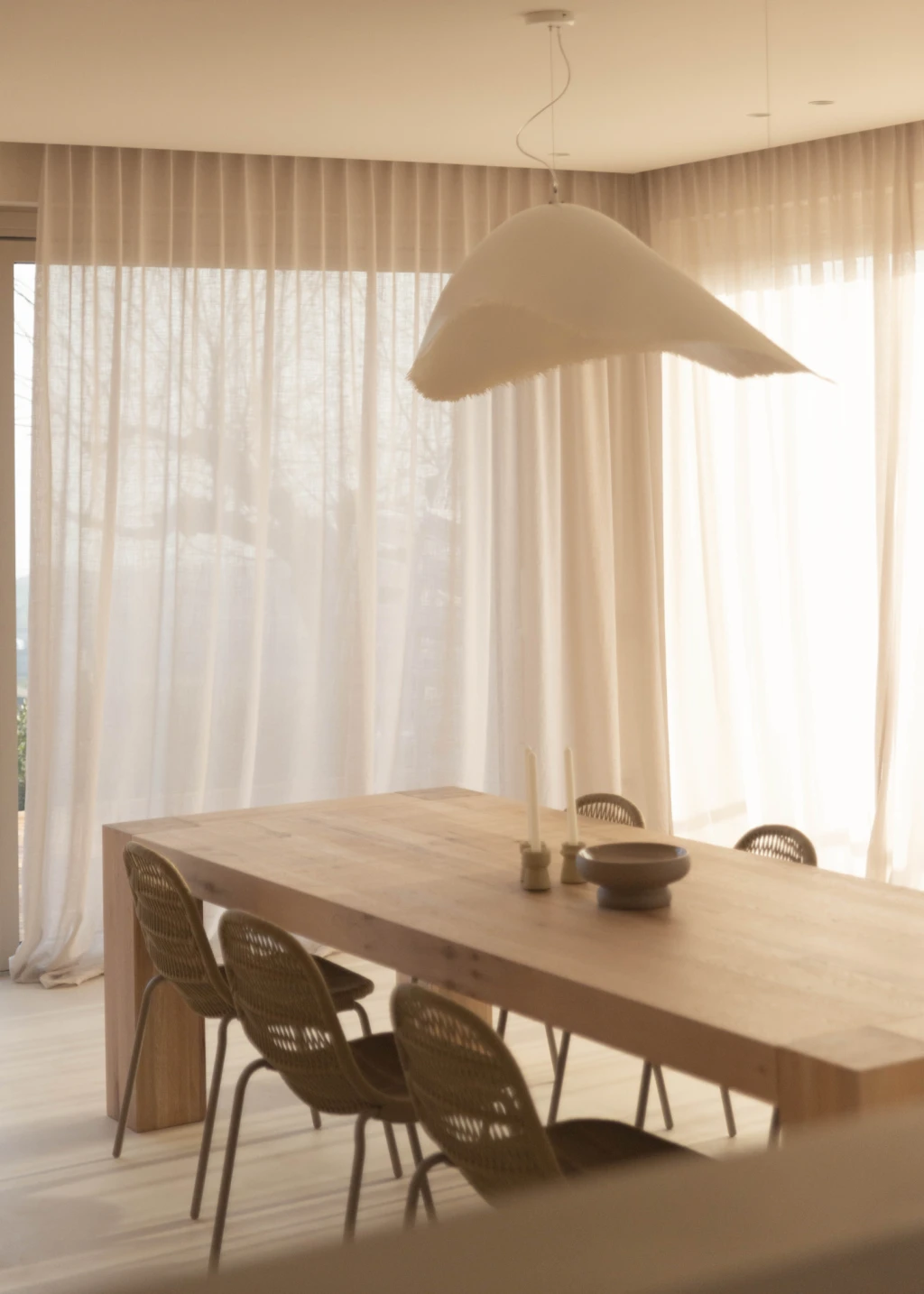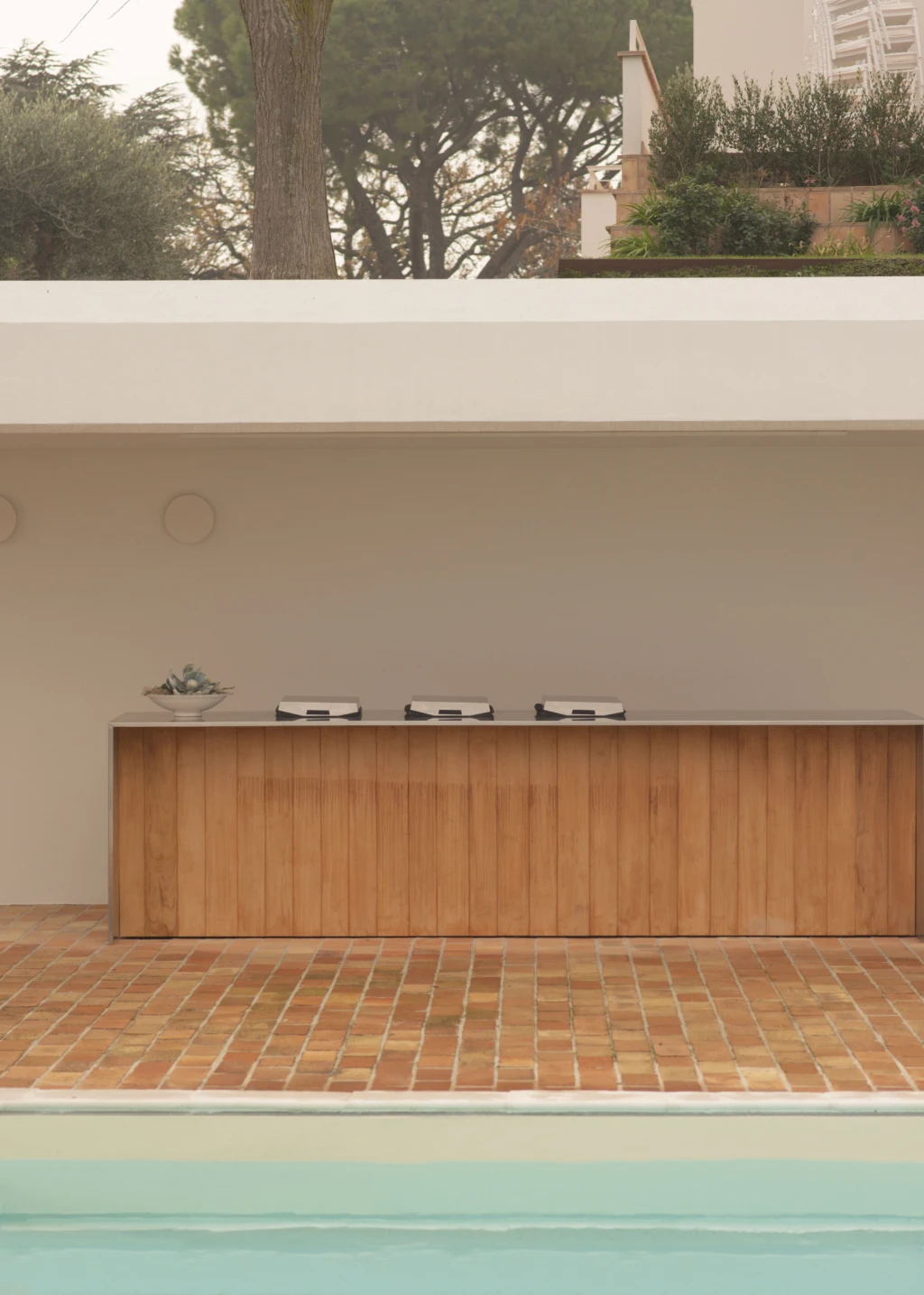 The house offers six bedrooms spread across three floors, each featuring artisan-crafted furniture, en-suite bathrooms, and private views over the hills or gardens. The open-plan kitchen is designed with a large bespoke island and high-end appliances, opening onto a terrace that is perfect for dining or relaxing while enjoying the view. Shared and private patios bring the outdoors in, while intimate corners invite quiet moments with a book or a glass of wine.