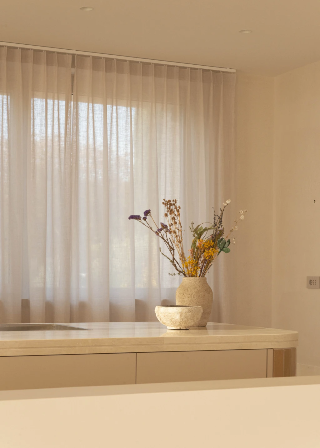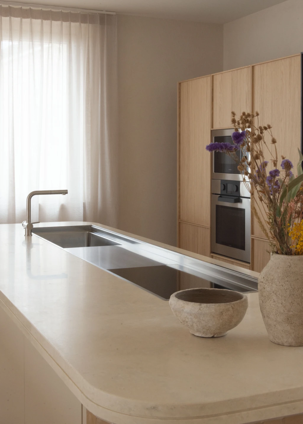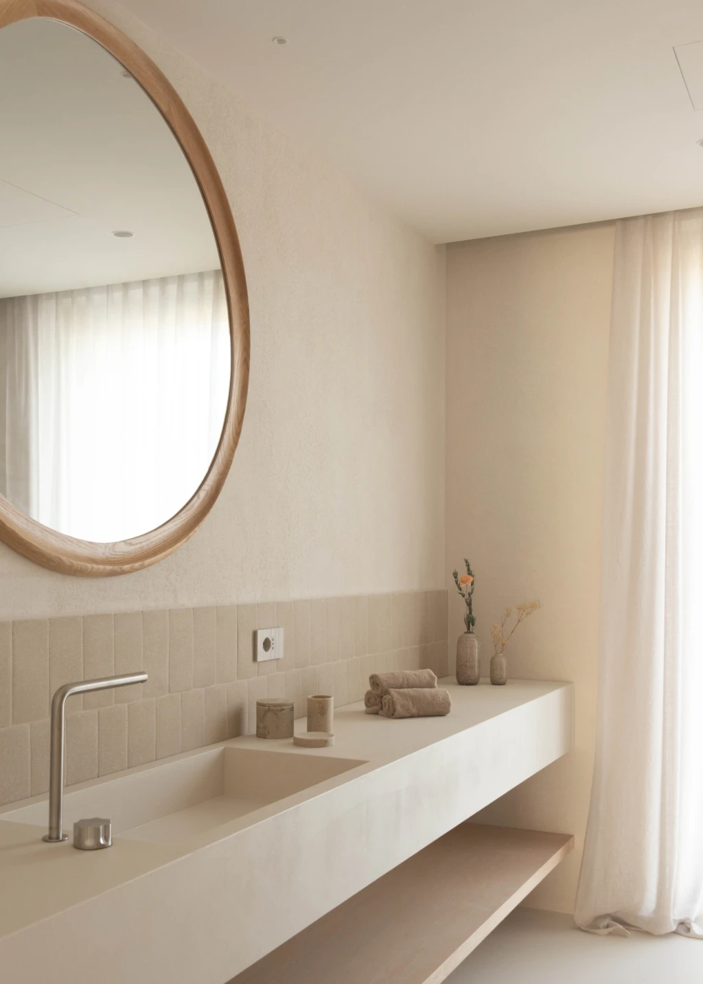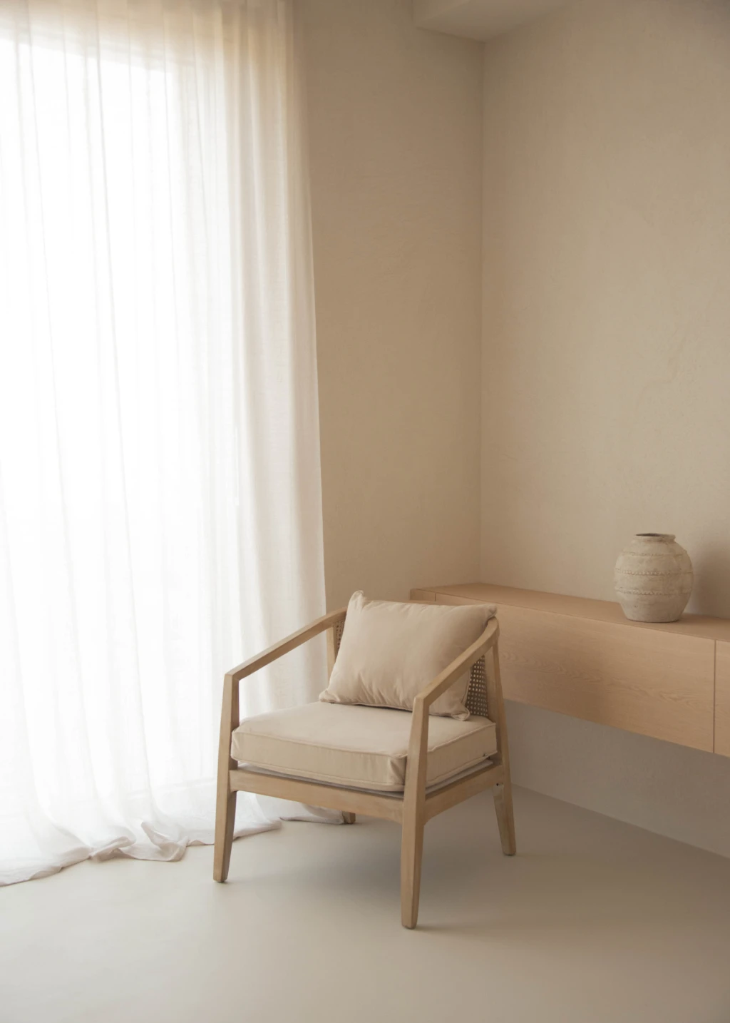 The house offers six bedrooms spread across three floors, each featuring artisan-crafted furniture, en-suite bathrooms, and private views over the hills or gardens. The open-plan kitchen is designed with a large bespoke island and high-end appliances, opening onto a terrace that is perfect for dining or relaxing while enjoying the view. Shared and private patios bring the outdoors in, while intimate corners invite quiet moments with a book or a glass of wine.