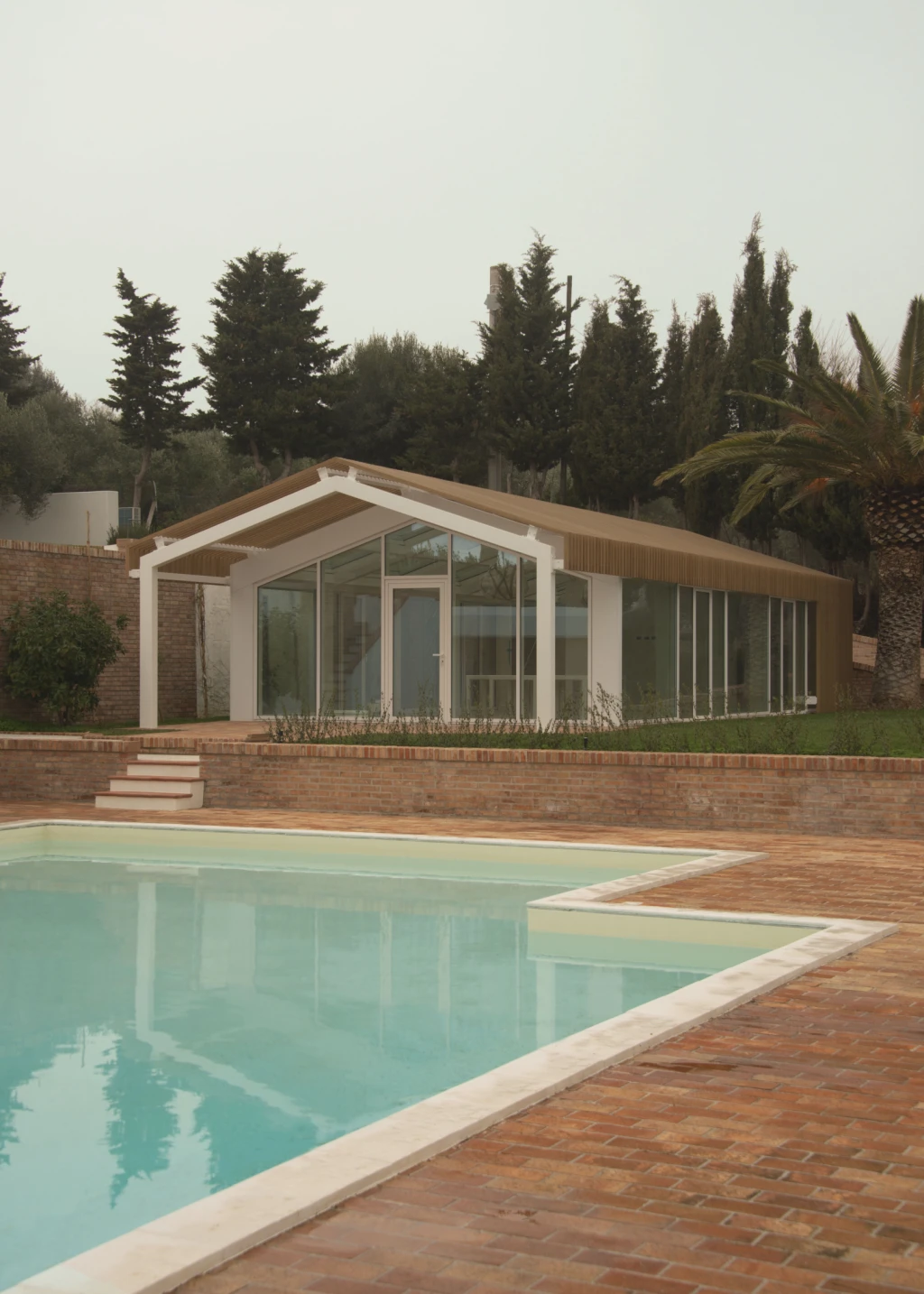The estate sits within a 2,700 m² panoramic garden that houses both a two-level 100 m² saltwater swimming pool and a limonaia—a glass and wisteria-covered retreat complete with its own kitchen and bath. The pool terrace offers loungers, umbrellas, and a fully equipped outdoor kitchen, while pathways through the garden and around the house provide unobstructed views of the Adriatic coastline. The limonaia is versatile, ideal for intimate dinners, small events, or wellness sessions such as yoga and Pilates.