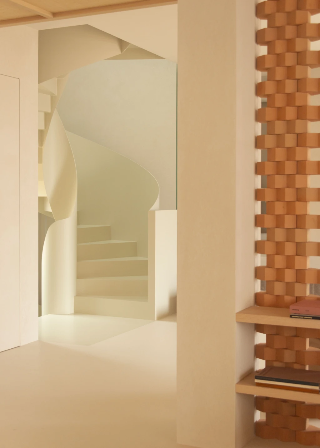 At its heart, the residence is an expansive 566 m² of living space where light flows freely through large windows, seamlessly connecting interiors with the surrounding panorama. The central feature is a stunning spiral staircase in bronze-coated resin, which elegantly links the three levels of the house. Custom-made furnishings, a Metafire fireplace, and thoughtfully curated lighting ensure that each area feels considered and complete.