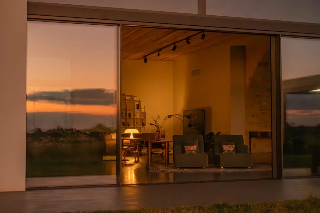 The property spans approximately 320 m2 of living space, thoughtfully designed to foster openness and connection with nature. Large glass walls and double-height ceilings draw the outdoors inside, while sustainable, high-performance engineering ensures comfort year-round. Features include underfloor heating, solar thermal and photovoltaic systems, and fully upgraded plumbing and electrical systems. Every detail, from the materials to the lighting, has been carefully curated for both elegance and function.