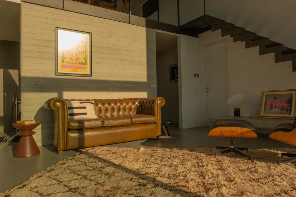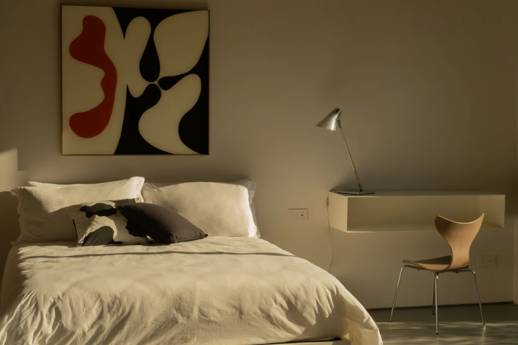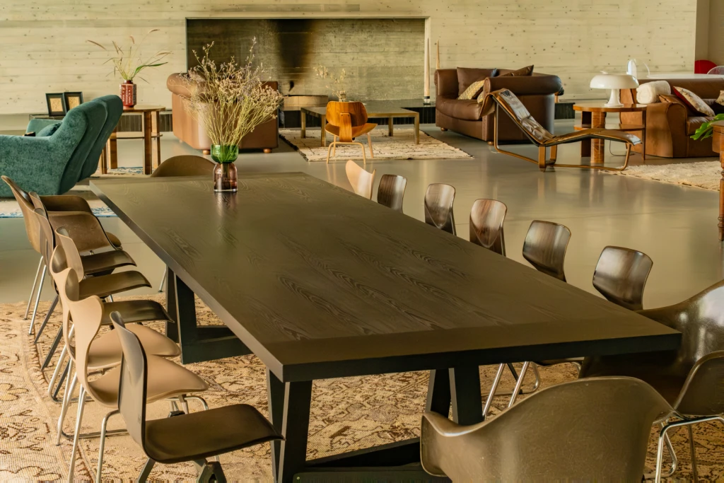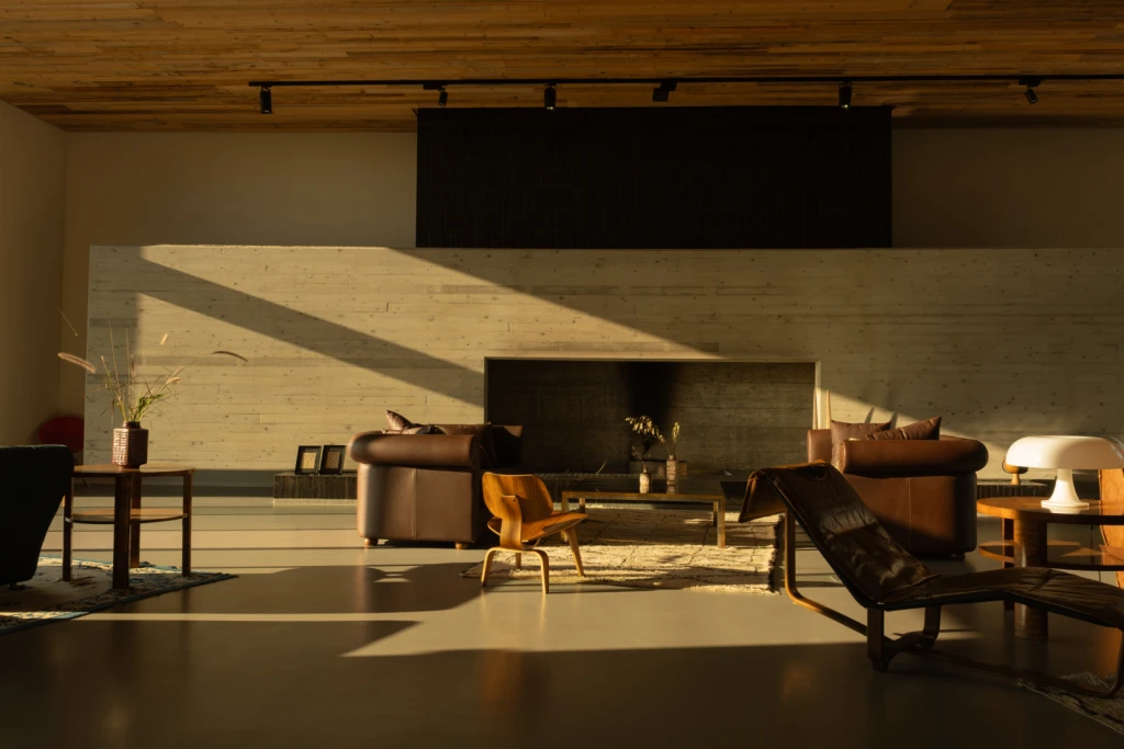 The Masseria accommodates 8 luxurious suites, each with en-suite bathrooms, walk-in showers or bathtubs, dressing areas, and private gardens with outdoor showers. Three suites additionally include private living areas. Interiors blend Scandinavian vintage pieces with iconic modern design and a curated collection of antique and contemporary art, enhanced by authentic textiles such as Beni Ourain and Persian rugs. The main living area offers multiple lounge zones, a dining area for 16, and two fireplaces, including a monumental concrete feature. A large open kitchen with stone islands and handcrafted cabinetry completes the space.