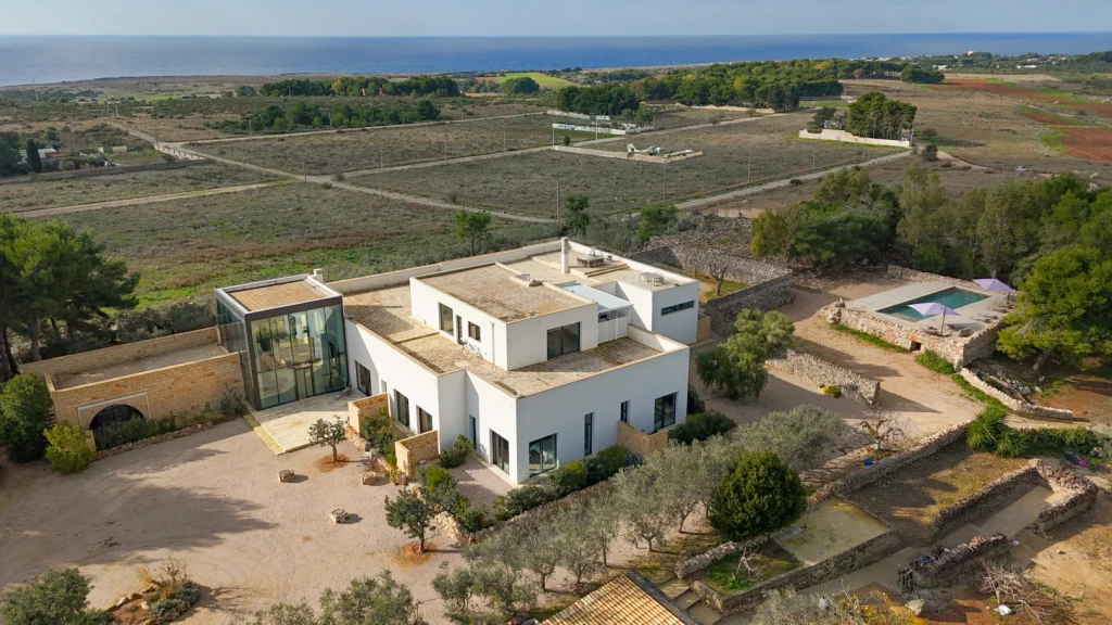 The property is nestled within the natural park of Porto Selvaggio in Nardò, offering panoramic sea views and an intimate setting surrounded by Mediterranean vegetation.
