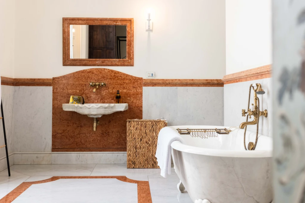 Redesigned in 1787 by Giuseppe Beccadelli Bologna, Marquis of Sambuca, it soon welcomed royalty and even Admiral Nelson. Severely damaged in the Second World War, it was restored around 2000 and has remained a family home for generations, preserving its late-Baroque interiors, historic maiolica floors, and monumental terrace.