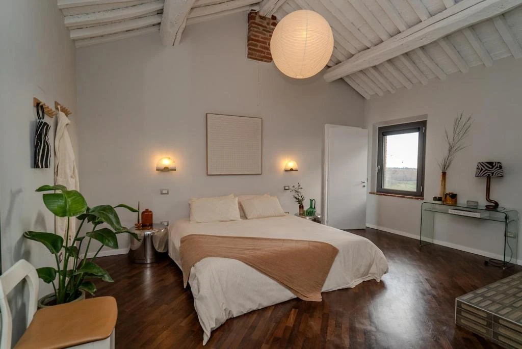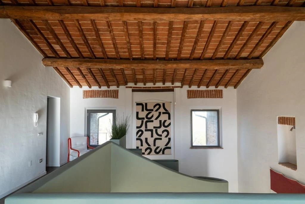 On the soft border between Tuscany and Umbria, just outside the small village of Petrignano del Lago, lies a farmhouse with a long and layered story. Dating back to 1768 and lovingly renewed over centuries, it was most recently restored by a couple whose lives have taken them across Europe, New York, London, and Dublin — a creative pair Federico (Fede) Riezzo and his Irish wife Louisa Jane (Lou Lou) Moran, came to Italy with a vision: to breathe warmth, personality, and a little playful design spirit into a traditional Italian villa.