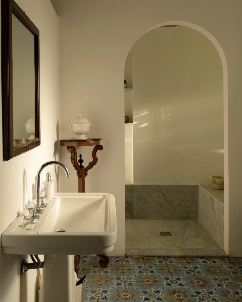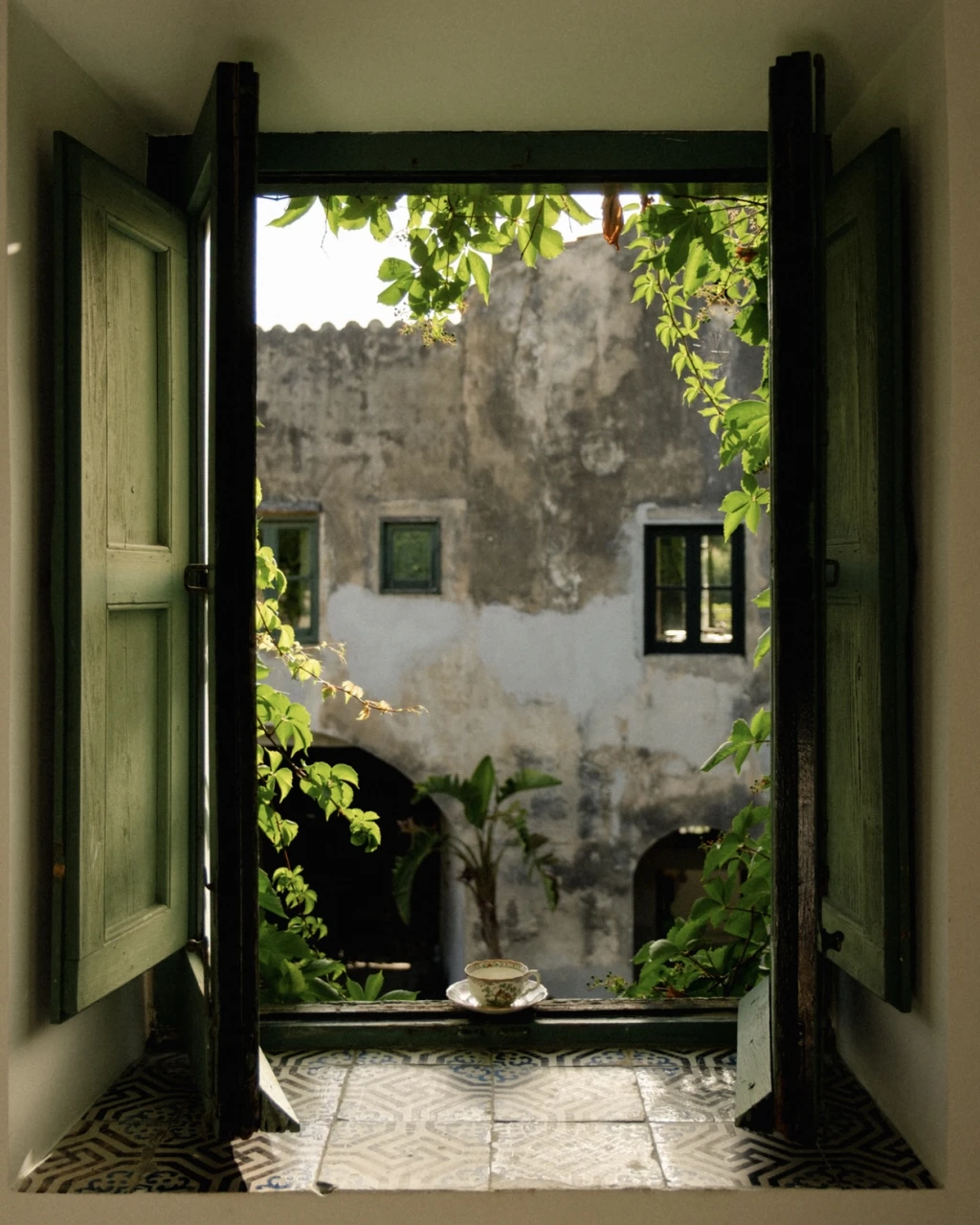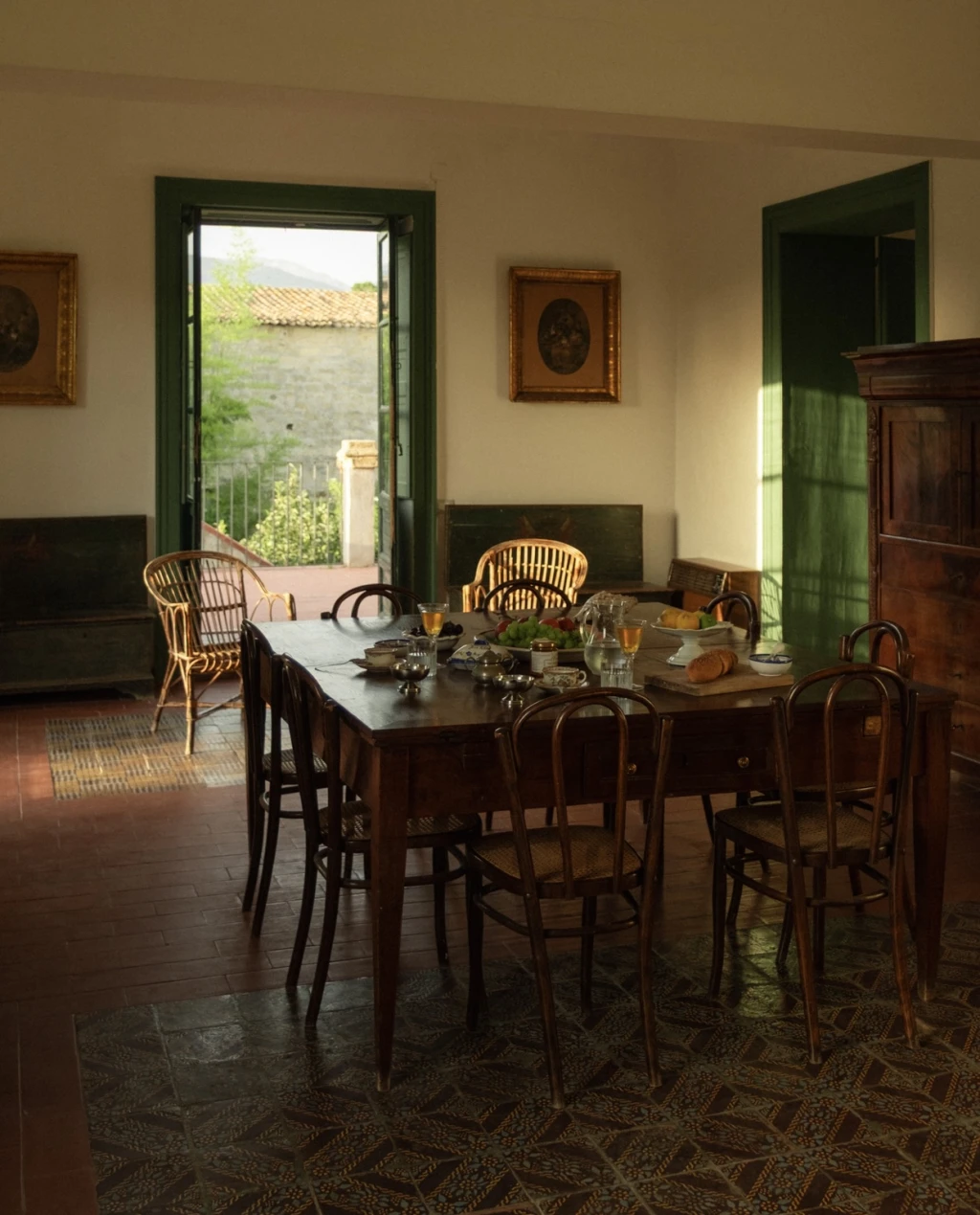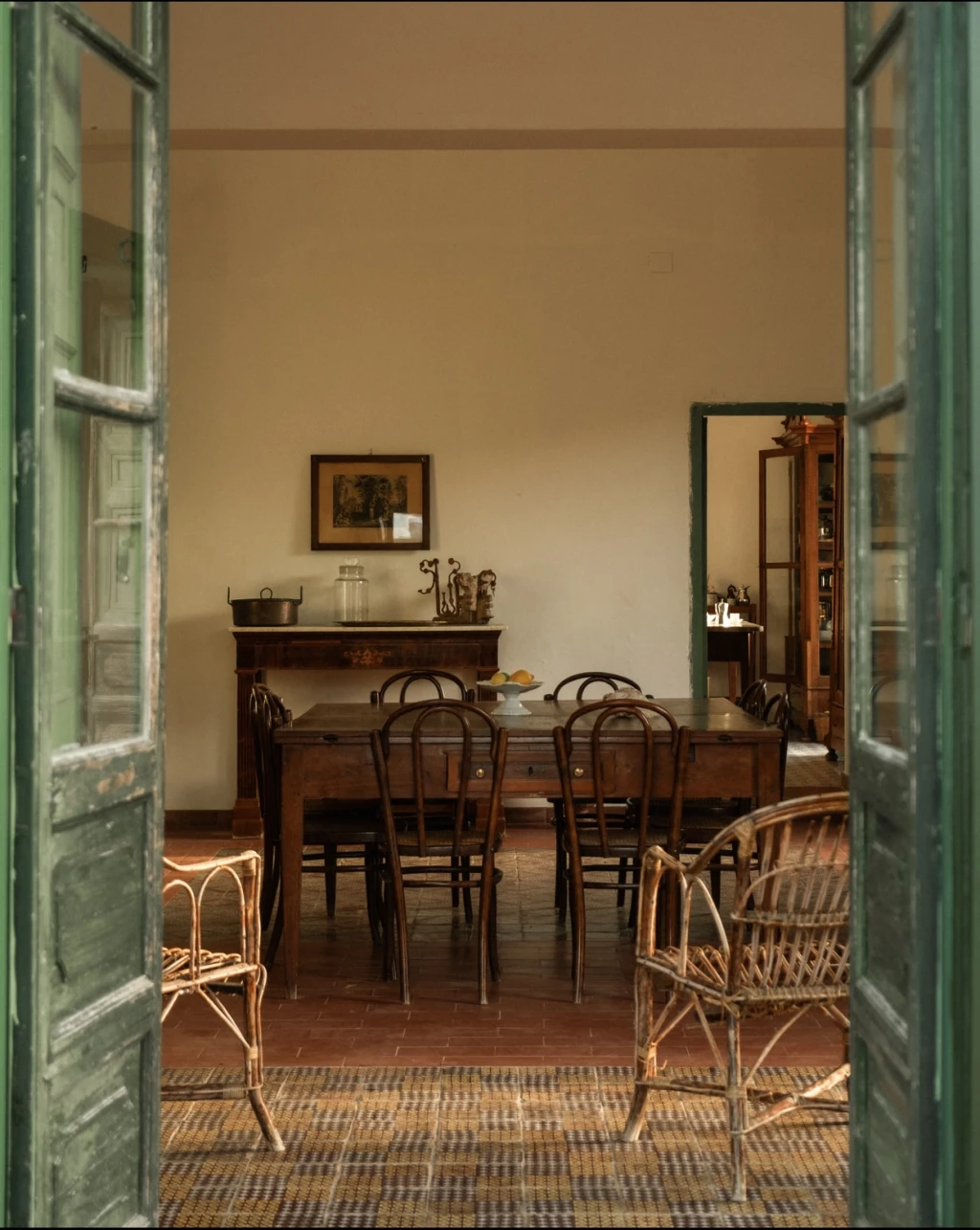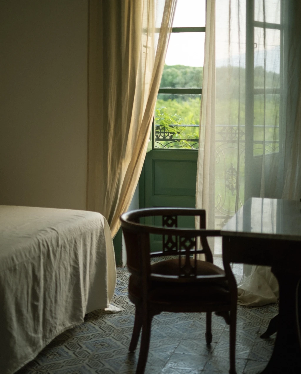The main house features four bedrooms and five bathrooms, thoughtfully arranged to provide privacy while keeping the communal spaces open and welcoming. The first floor blends nineteenth-century furniture with simple, elegant details, preserving the soul of the home while offering all the comforts expected today — from fully equipped kitchens to air-conditioned bedrooms. Natural ventilation keeps the common areas airy and refreshing, while Wi-Fi is available in designated workspaces.