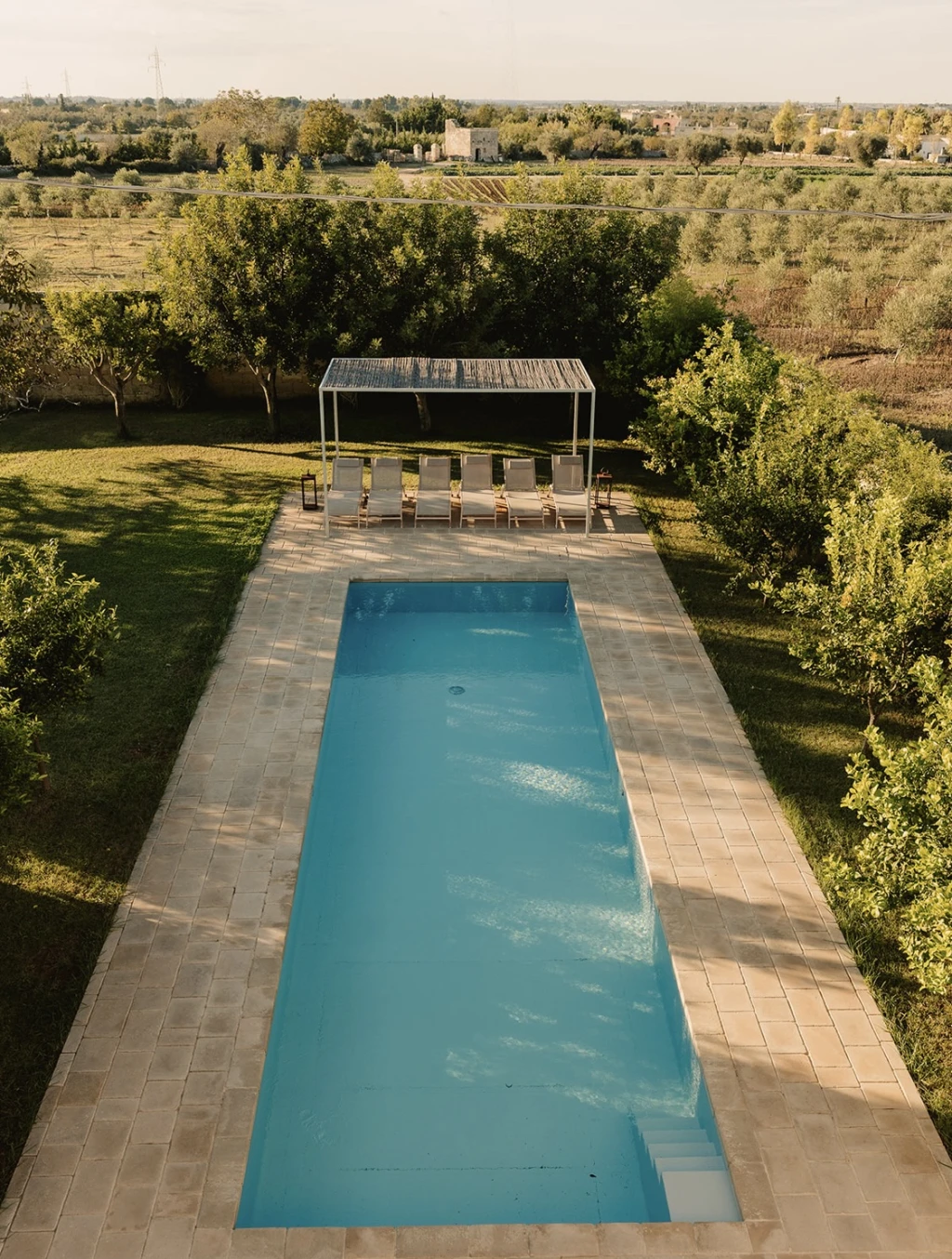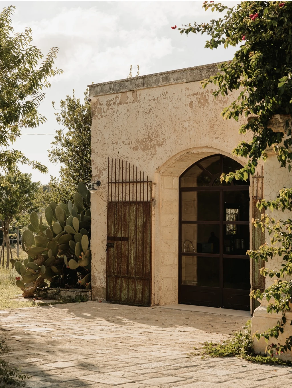 A few years back, during a bike ride through the Galatone countryside, the current owners discovered the house that had been abandoned for several years. They immediately fell in love with it and brought it back to life by reviving its past splendor and adding all the comforts of the modern day. Additionally, they continued the farming that already took place here and replanted olive trees, and vineyards, and created a whole plantation of fruit trees.