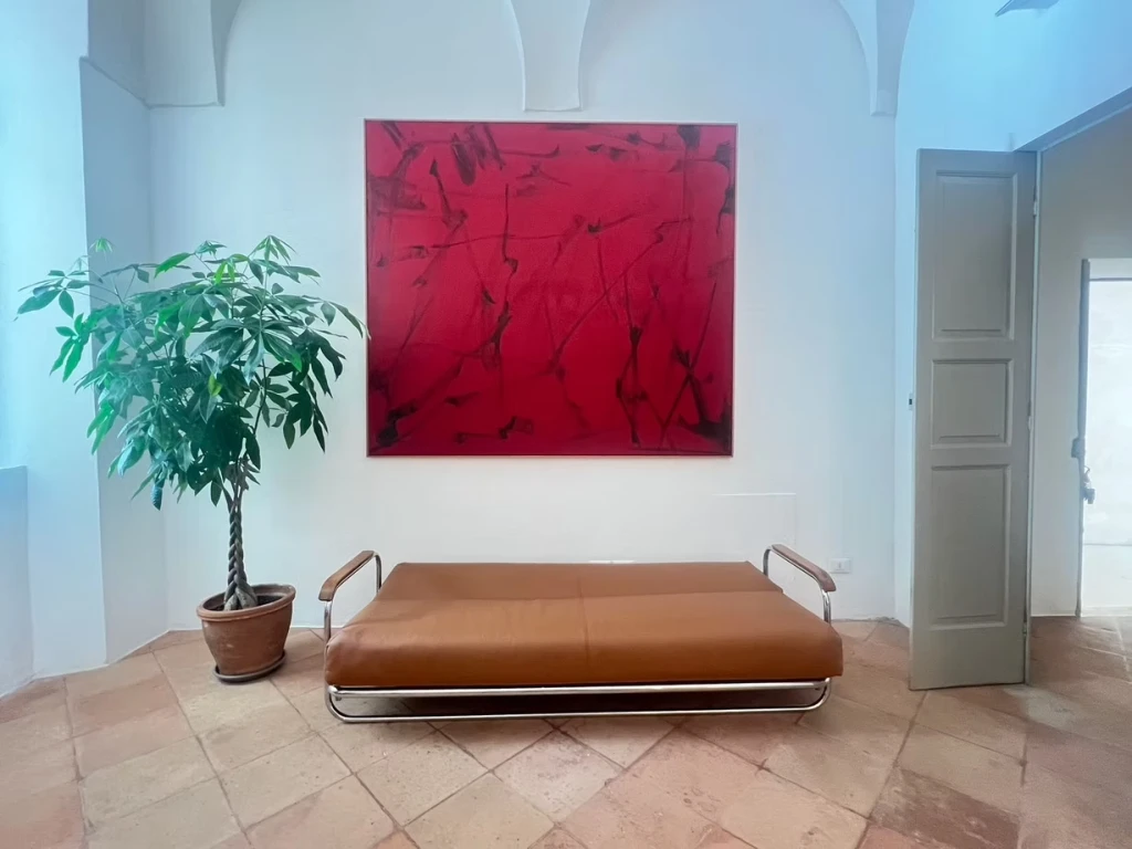 At the beginning of the 2000s, the Palazzo was completely renovated by the current owners, Architect Massimo Ghisi and his wife Vanna Bernardelli. They have transformed this ancient palazzo into a home, architecture studio Disegno, and art gallery. They personally took care of the renovation and design, down to the very last detail. The quality is truly outstanding. The aim of the design of the Palazzo is to live in direct contact with the artworks and with as little furniture as possible. Staying here is a profoundly unique experience! Once or twice a year they open their private art collection to the public, making the Palazzo an inspiring and constantly changing meeting place for artists and art lovers.