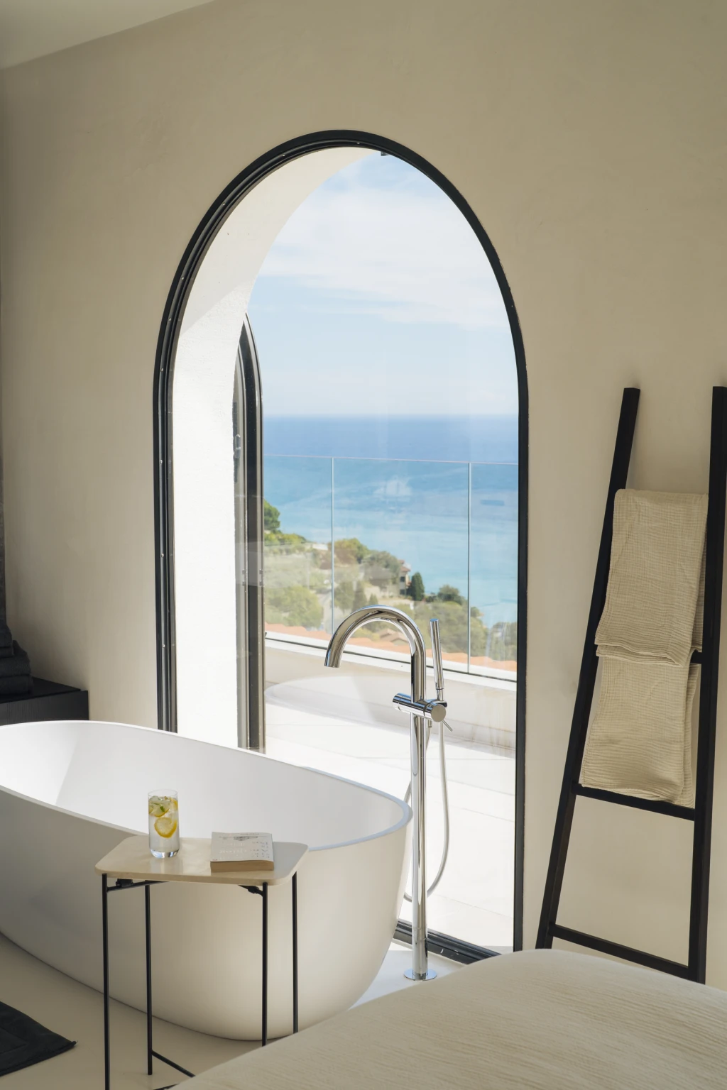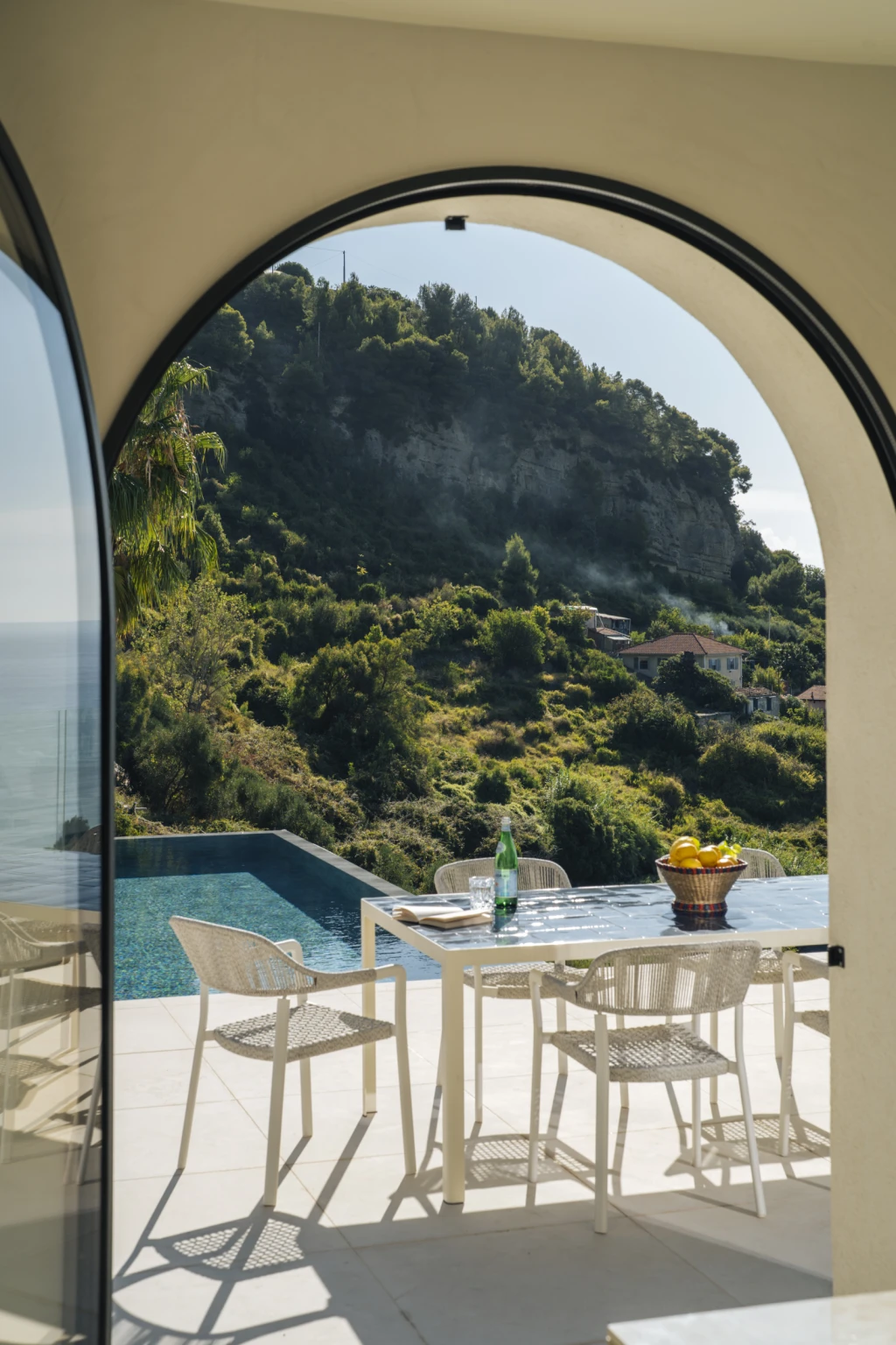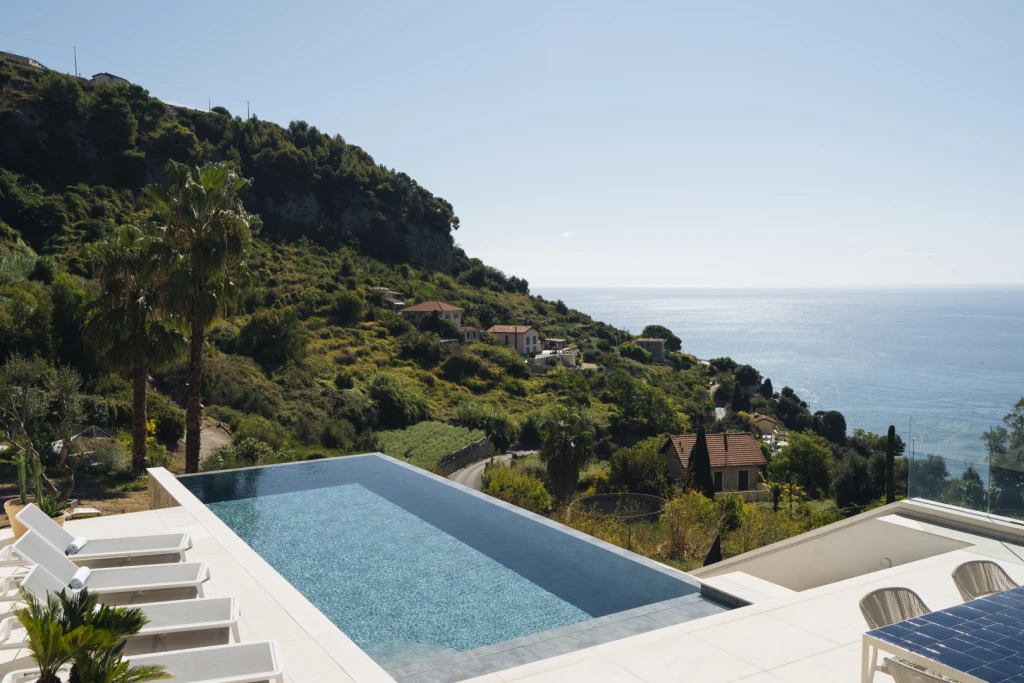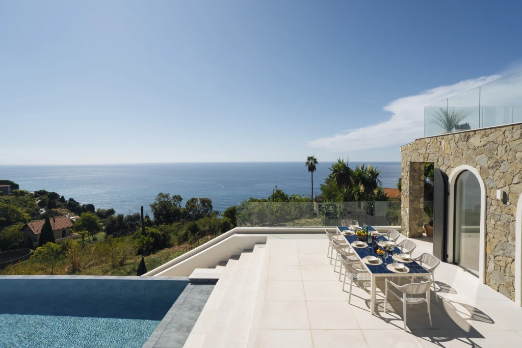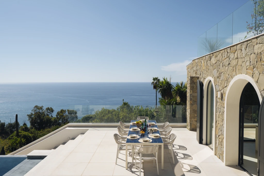 Perched on a dramatic cliff between Menton and Ventimiglia, this newly built villa is a masterpiece of modern design, offering uninterrupted panoramic views of the Mediterranean. With its sleek architecture, infinity pool, and luxurious amenities, it’s the perfect retreat: tranquility, elegance, and effortless access to the French and Italian Rivieras.